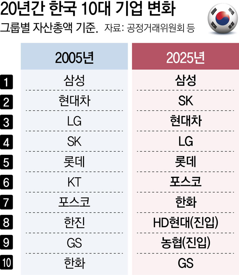 1. 한국 경제, 20년째 변화 없는 기업 순위